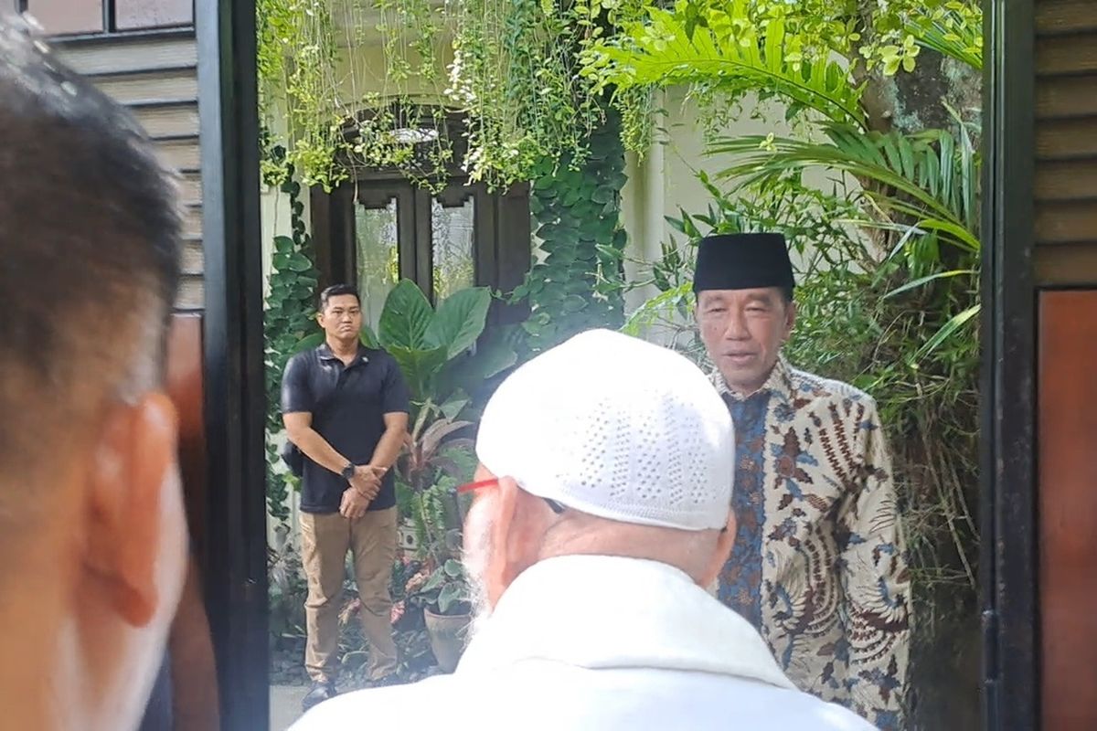 Solo – Pendiri Pondok Pesantren Al Mukmin Ngruki, Abu Bakar Ba'asyir, bertemu dengan mantan Presiden RI Joko Widodo (Jokowi) di kawasan Sumber, Kecamatan Banjarsari, Kota Solo, Jawa Tengah, Senin (29/9/2025). Pertemuan berlangsung secara tertutup selama kurang lebih 30 menit.